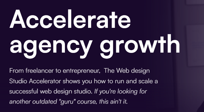 From freelancer to entrepreneur, The Web design Studio Accelerator shows you how to run and scale a successful web design studio. If you’re looking for another outdated “guru” course, this ain’t it.